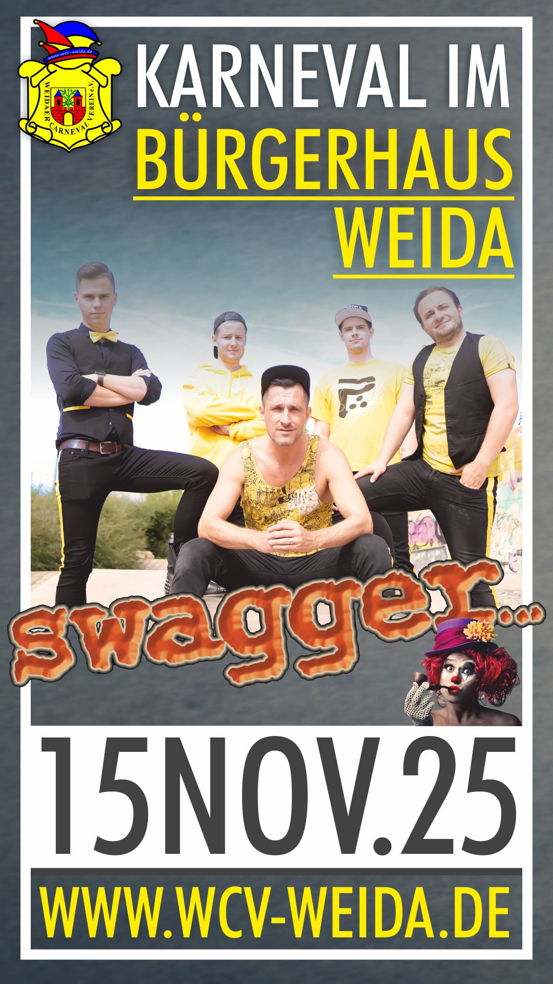 Der Kartenvorverkauf für die Auftaktveranstaltung mit SWAGGER startet am Montag, o3. November 2o25 bei der Firma Jörg Recke (Rosenstraße Weida).